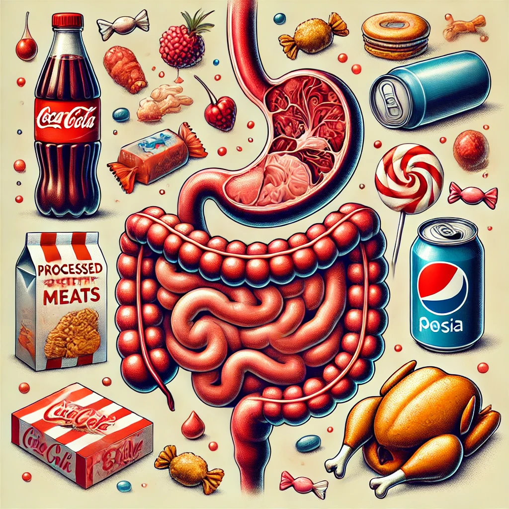 가공식품에 흔히 들어가는 인공 감미료(아스파탐, 수크랄로스 등)는 장내 세균 다양성을 줄이고, 과민성 대장 증후군(IBS)과 같은 질환을 유발할 수 있다는 연구 결과들이 있습니다. 또 햄, 소시지, 베이컨 등 가공육에 포함된 질산염은 장 점막에 자극을 주고, 장기적으로는 장암의 위험 요소가 되기도 합니다.